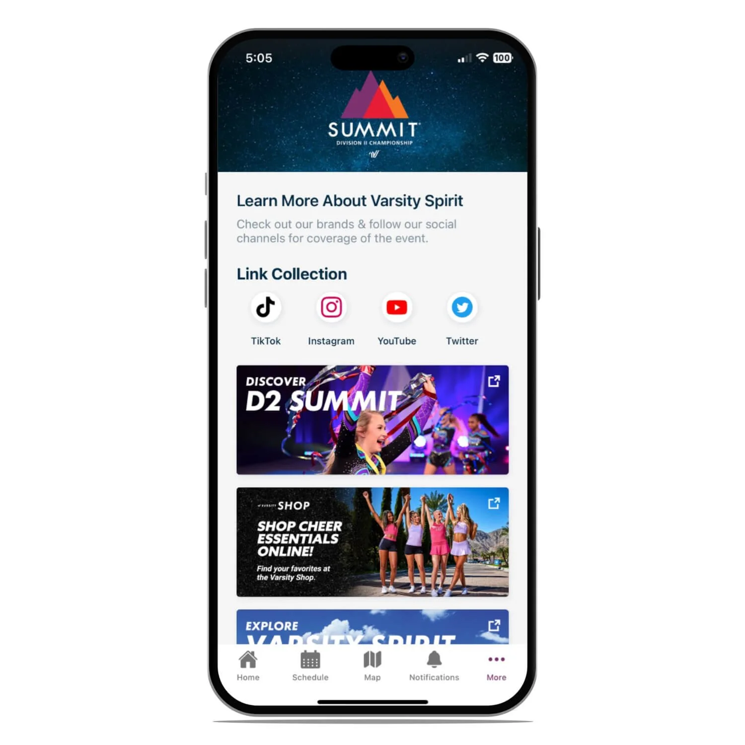 I managed the launch of Varsity Spirit’s first-ever mobile app for the NCA All-Star National Championship, used by over 58,000 attendees. This initiative was one of the first major steps in Varsity’s broader digital transformation, laying the groundwork for future lead generation and fan engagement. The app centralized essential event information, including real-time scores, live competition schedules, venue maps, and a direct link to stream the events. It also connected users to the Varsity Spirit Store and introduced a fun, interactive game that encouraged in-person engagement and required app usage—boosting both downloads and on-site participation.